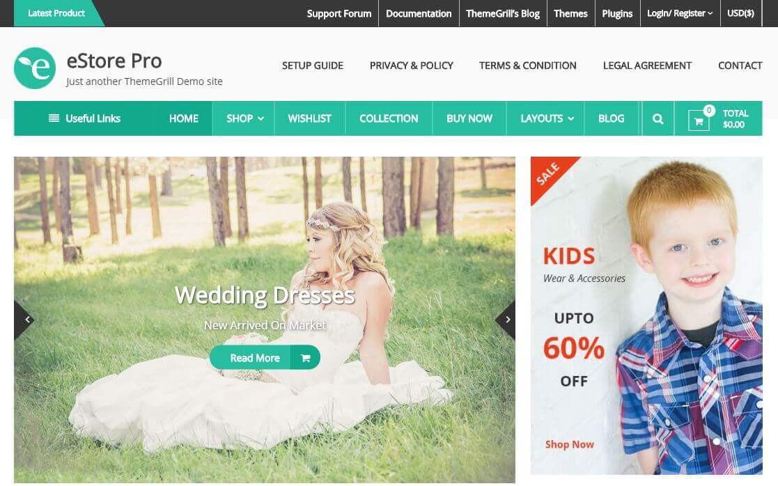 It provides unlimited color options to choose from and the theme is highly customizable. It has a great customer support to back you up with the setup and installation of the theme. This WordPress clothing theme also has a smart built-in customizer to help a fashion store owner to set up a great online eCommerce store.