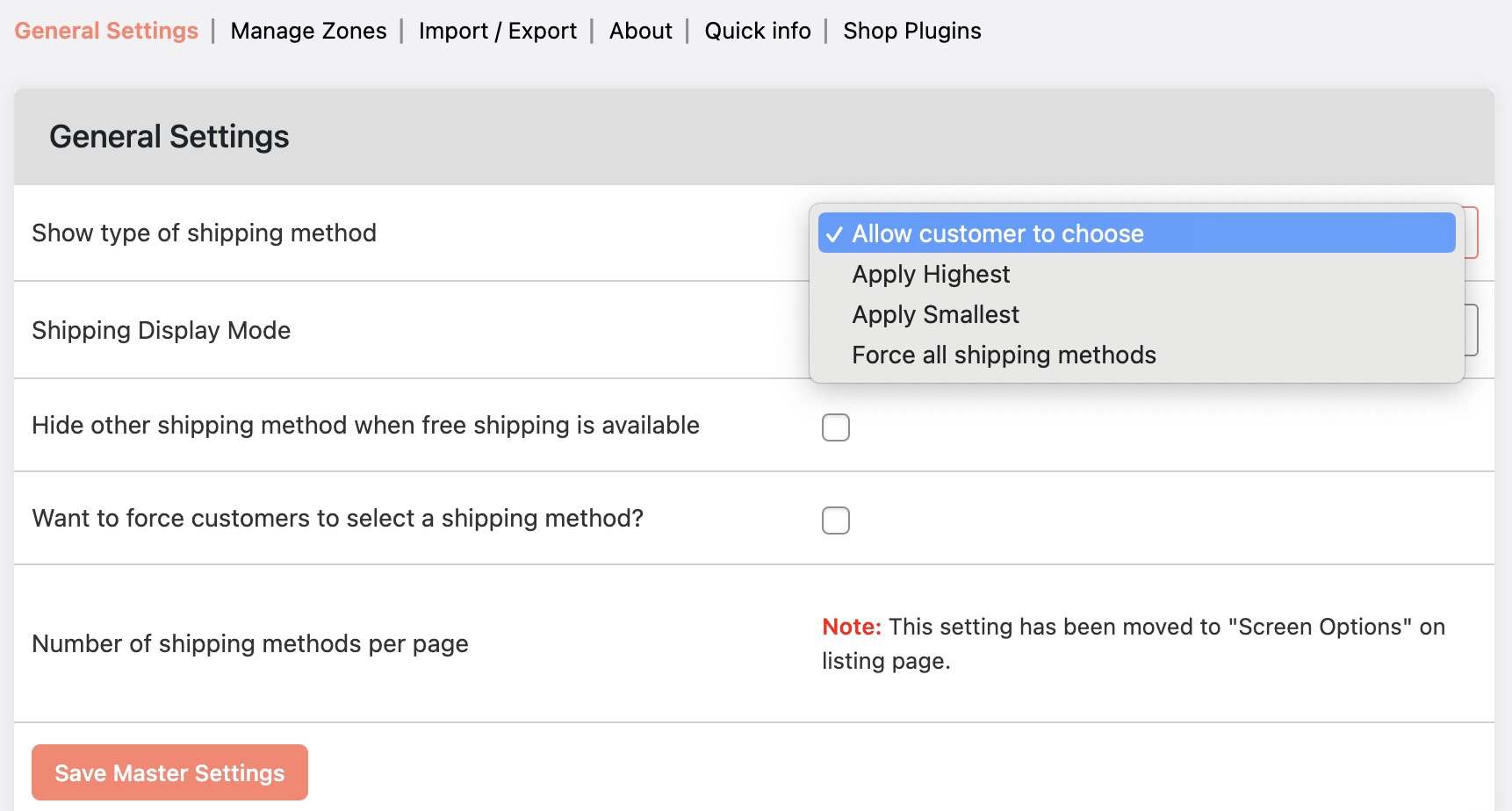 If you want to charge the sum of all applicable shipping method charges on the cart page then you have to select ‘Force all shipping methods’ from the master settings.