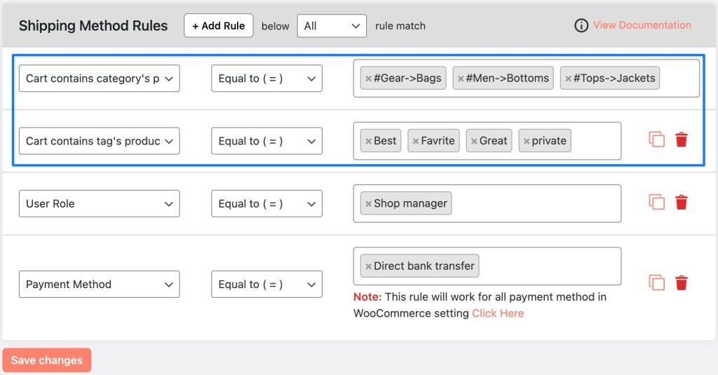 Add conditional shipping rules based on product category and tags. Create unique shipping pricing options for products belonging to a specific category or having specific tags.