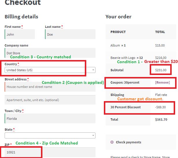 Now, whenever your buyers will order products with Florida as the delivery destination while cart value is above $200, they will get a discount of 30%.
