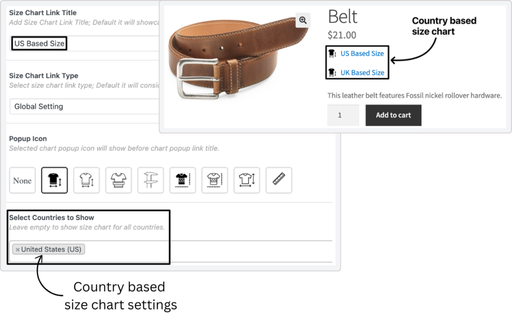 Product Size Charts Plugin for WooCommerce Feature 1